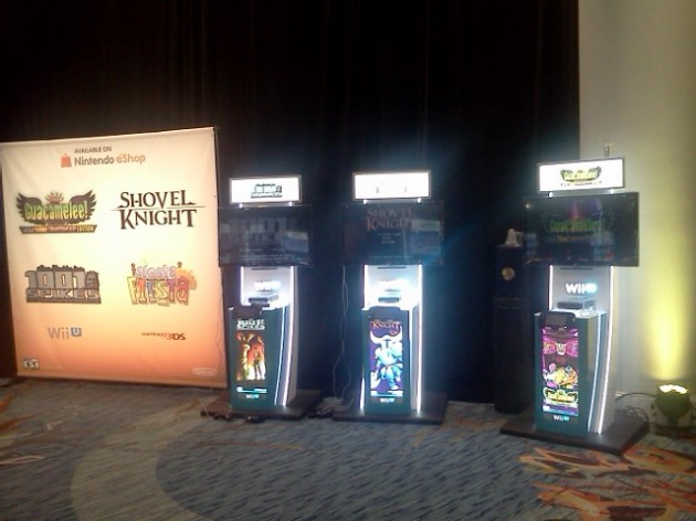 We just got back from San Diego Comic-Con! It was a ton of fun to run into everyone and hear how much you all are loving the game!! In case you missed it, Nintendo was awesome enough to host a few kiosks running Shovel Knight at their event! Take a look at the beautiful displays they set up for us!