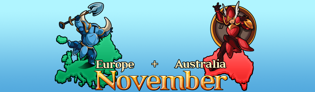 Hey Shovelonians! Believe it or not, we can finally confirm that Shovel Knight will be releasing in Europe and Australia in November for the Wii U and 3DS!! We are working on pinning down the exact day still, but the wait is almost over.