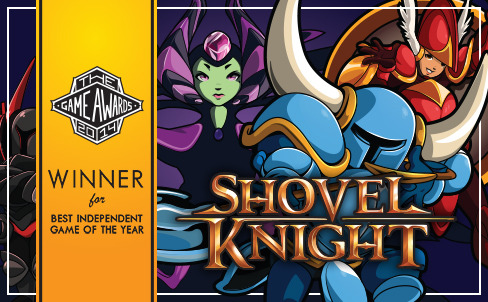 The end of the year approaching means that it’s Game Award season! And wow, so far we have had a great run! To our surprise and delight, Shovel Knight was chosen as Indie Game of the Year at the Game Awards. You can hear our heartfelt acceptance speech here, and we even mentioned our Kickstarter Backers!! We love you guys <3