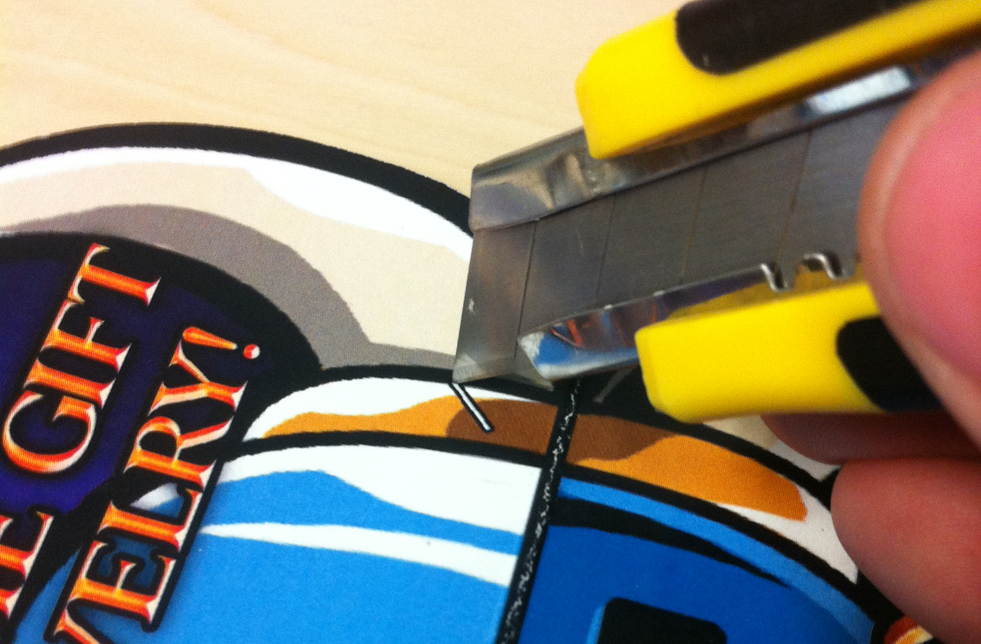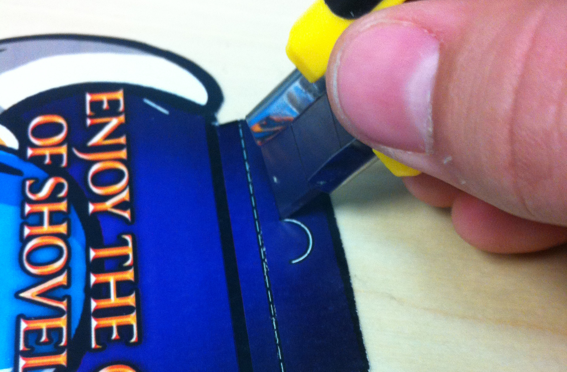 The final step is cutting the semi-circle out of the top flap. This requires precision cutting. If you don’t have something to accomplish this, then we recommend cutting off the top and taping together the sides from within.