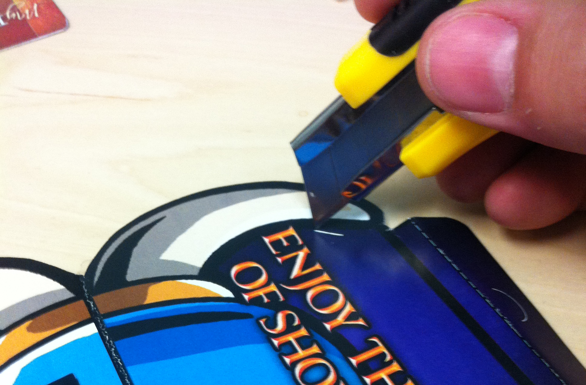 Now is probably a good time to find your gift card. The next step will require cutting out slots designed for the card. Not all of them fit perfectly though, the holder is designed to fit a credit card size. If yours is bigger, either cut it down with scissors, or plop it behind the holder inside the card. If you don’t have a card, then we recommend writing a nice message inside to let them know they got Shovel Knight!! Or maybe you should write a nice note anyway!