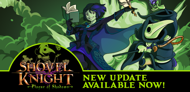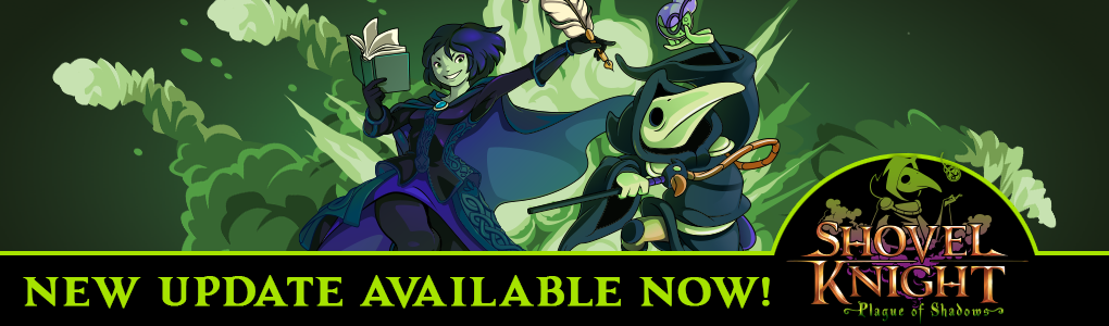 World class platforming, music, storytelling, and art all return in Shovel Knight: Plague of Shadows, available now to all owners of Shovel Knight! Pick up the FREE DLC on your platform of choice – Wii U, 3DS, Xbox One, PS4, PS Vita, PS3, Windows/Mac/Linux (Steam, GOG, Humble)! Extract the potion’s key ingredients from Plague Knight’s former allies… the villainous knights of the Order of No Quarter! Take on the explosive quest with a new play style, new story, new bosses, and more!