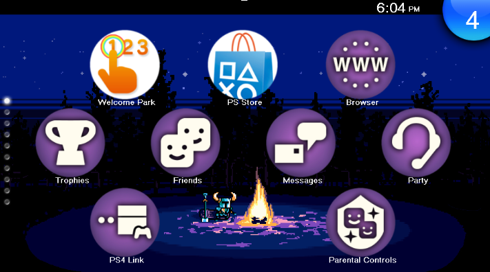 We also made a super fun theme for the Vita. Campfires, Wizzems, and The Baz! Pixels and illustrations! This one has it all!