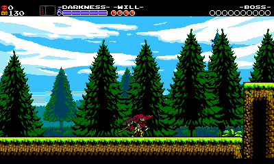 Move into almost any wall or ledge and Specter Knight will begin climbing. Once he reaches the top he’ll leap up to the higher ground. Specter Knight can only climb a set distance before falling or jumping away though so be sure to plan your path accordingly!