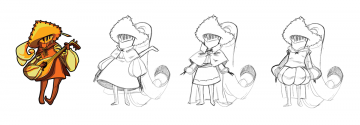 But… we were really attached to our current designs, and we didn’t want them to change too much just because of the body of the character. Adding gendered symbols like bows or dresses just wouldn’t do either- it would be a regressive “Ms. Pac Man” problem all over again! We had to create new character designs that were very true to their characters! To do so, we created some guidelines: