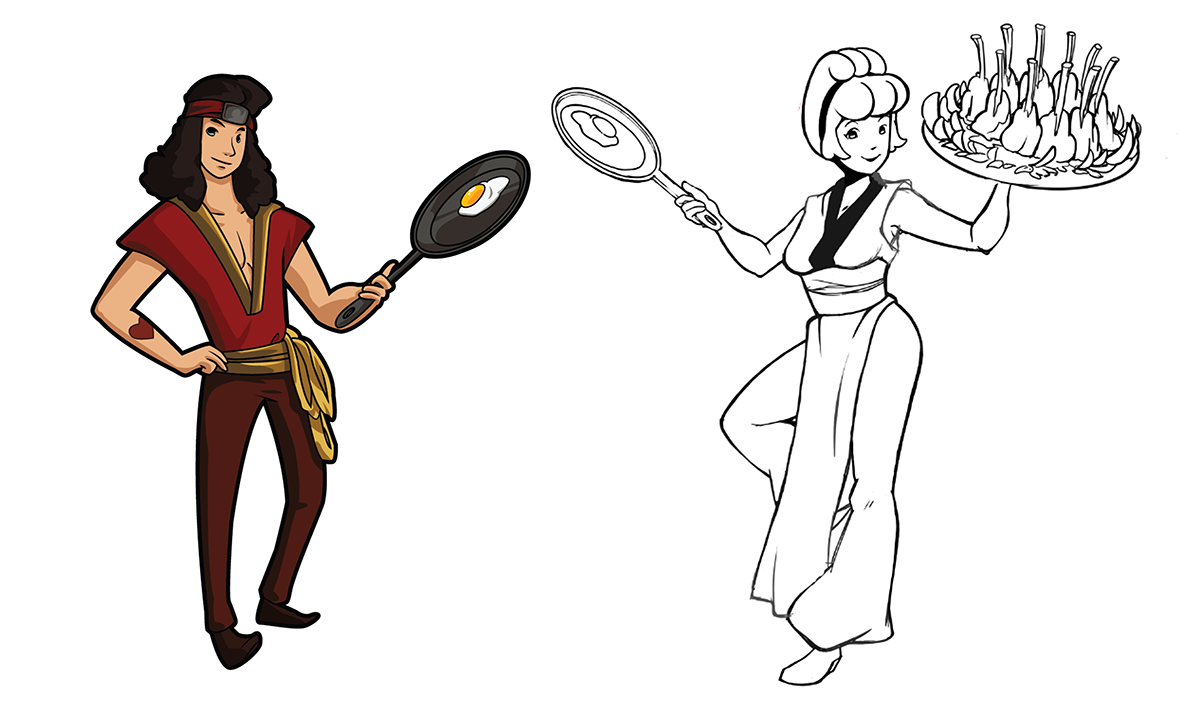 Now for the fun part- the actual designs of the characters! One of the big inspirations for Body Swap was an episode of Adventure Time called “Fionna and Cake”, which was essentially a Body Swap version of the cartoon! When we saw that, it got us even more interested in creating cool designs for our “new” characters. With that enthusiasm, we set to work!