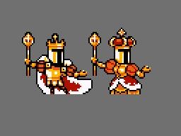 This looked great, although the hat and helmet broke our cross-dress rule a bit. It looked like the original King Knight just threw on a new hat, so we had to make some small revisions for the Final Sprite!