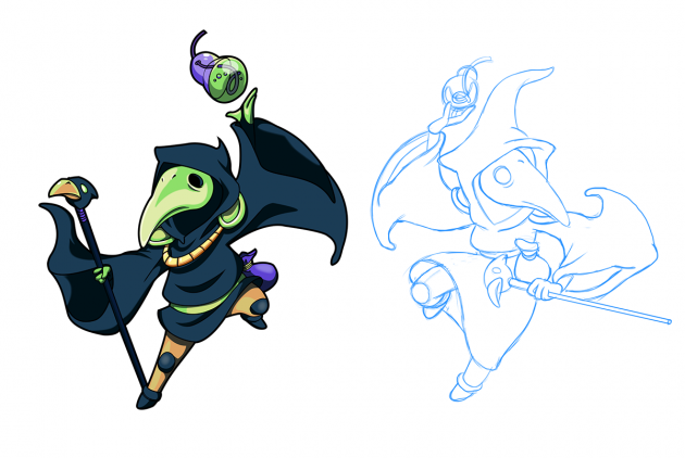 The idea was that Plague Knight shouldn’t be a character who is interested in fashion, but rather a person who wakes up, dresses in simple attire, and does alchemy all day.