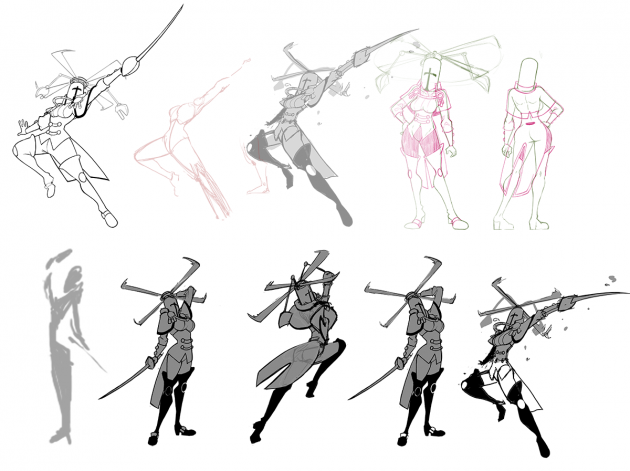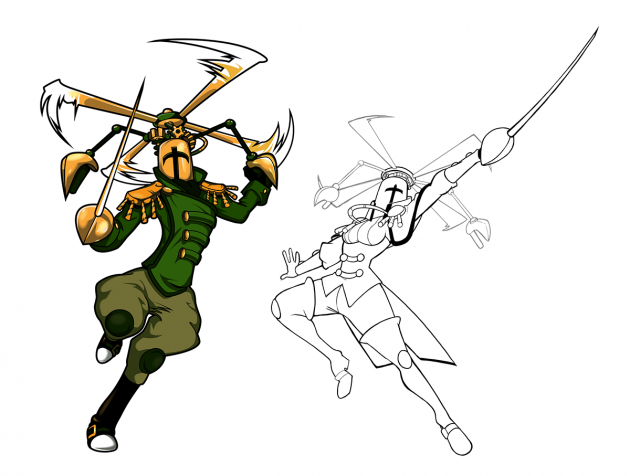 Feminine propeller knight is just as sexy as masculine propeller knight and both counterparts are more than willing to flaunt it in all their poses! Since an exaggerated personality is always easier to work through than the more subtle approaches in the other characters, this design was one of the easiest – it went through very little iteration.