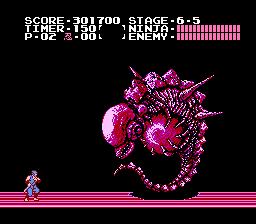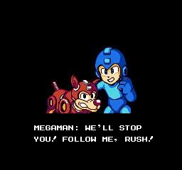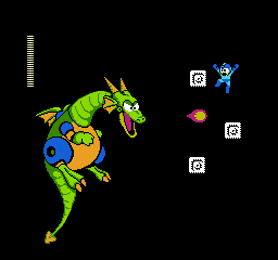In Mega Man 2, they went a step further, using our setup of having a big boss chase you as you are forced to jump from tiny block to tiny block.