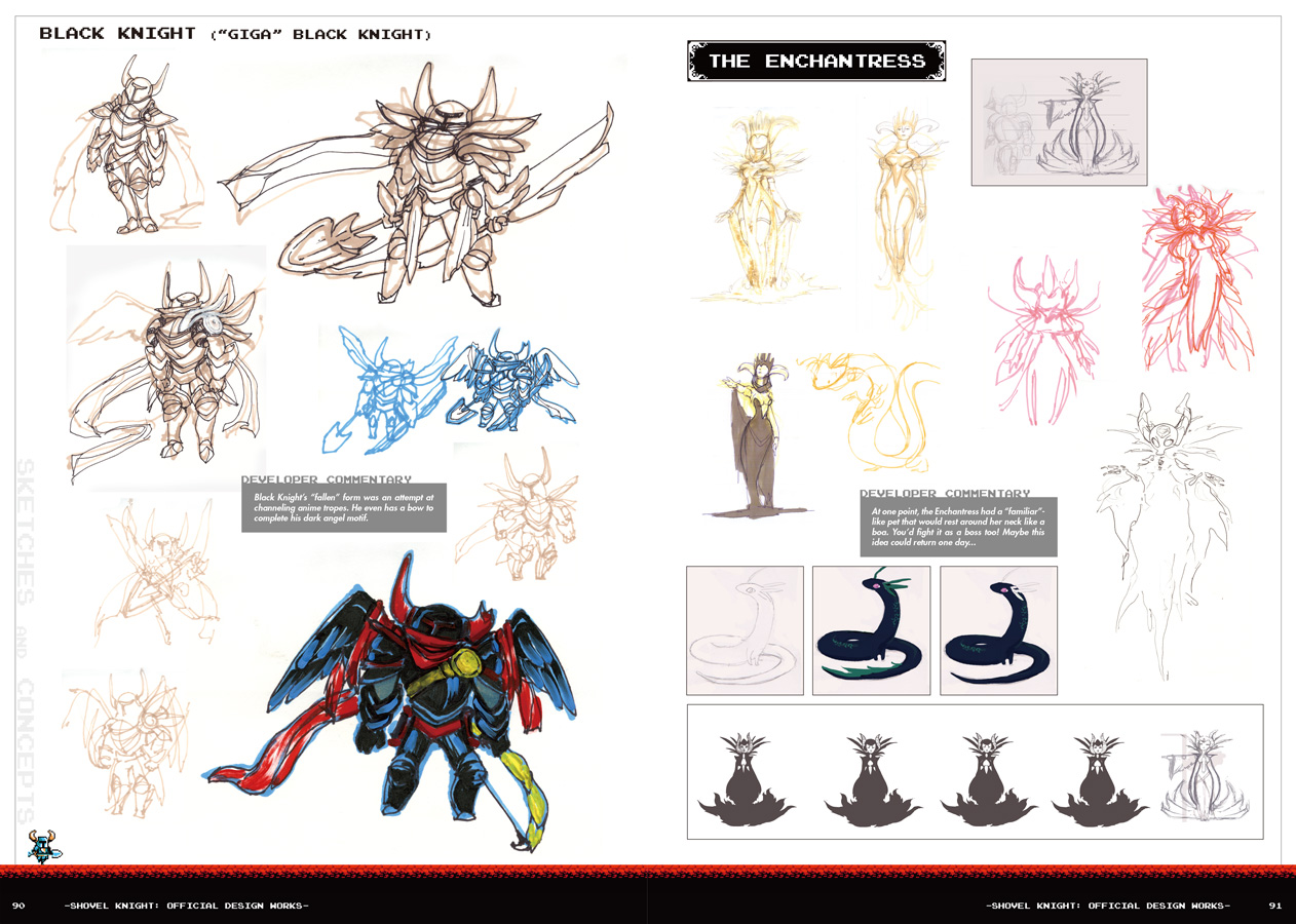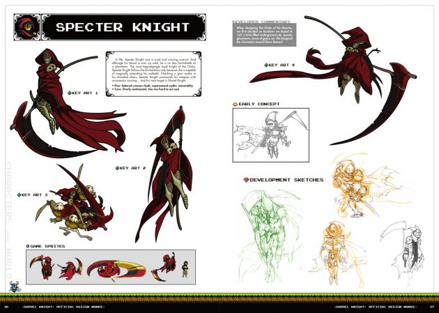 UDON has worked very closely with us to ensure that Shovel Knight: Official Design Works is every bit the definitive Shovel Knight art book that fans deserve. Within its pages you’ll find character art, developer commentary, rough illustrations and concept art, background development images, comprehensive sprite sheets, full-page promotional illustrations, and more – including an exclusive interview with the team! It was a ton of fun to recall our processes and problems with crafting each of the characters and worlds in Shovel Knight, and we can’t wait to share it all with you!