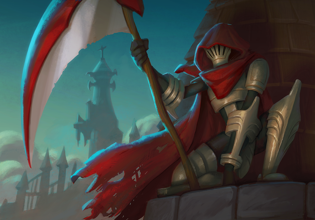 This painting of Specter Knight blew us away. We loved how the colors and composition worked for the piece, and the style is phenomenal. And if you look at it in a certain way, the silhouette of Specter Knight’s cape and scythe looks like a skull! Ingenious!