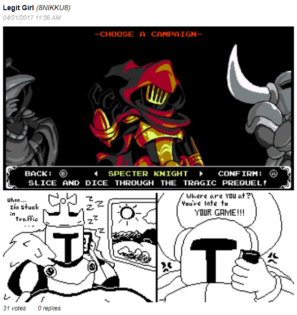 Seeing a nexus of discussion, favorite moments, and artwork form up by a community of players, day by day and with each new campaign, was a delight. We hope everyone had fun sharing and sketching their favorite Shovel Knight moments in game too. As of November 8th, 2017 Miiverse is no longer in service, but we wanted to take some time out at the end of the year to highlight just a bit of the creativity on display!