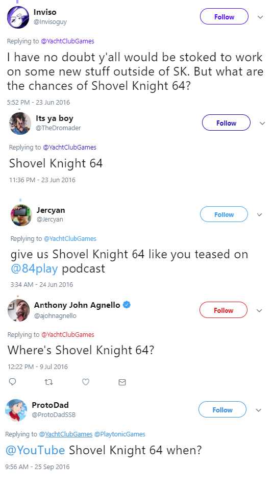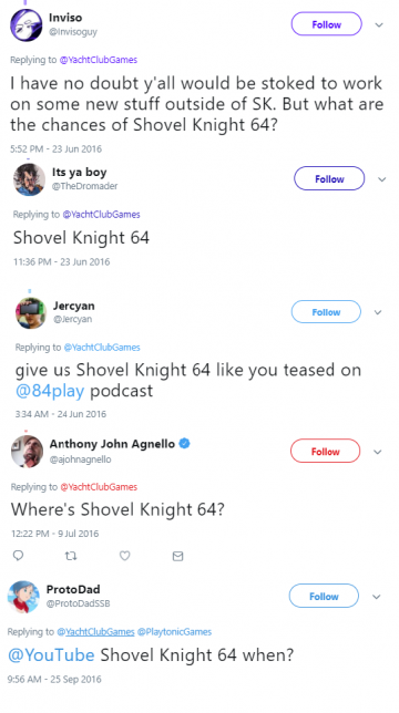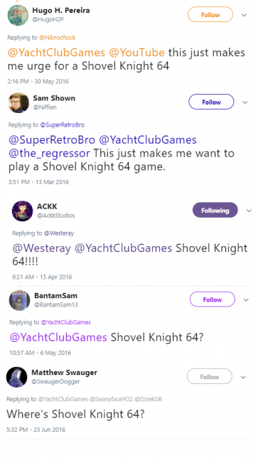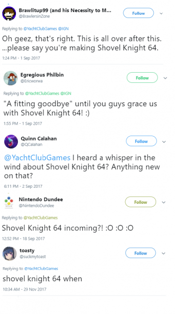 After years of hints, vague promises, elusive replies, and just simply wishing it was a thing already, we here at Yacht Club Games can finally pull back the curtain, roll out the carpet, and really reveal that development on the much-requested Shovel Knight 64 is happily underway!