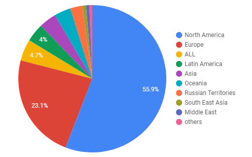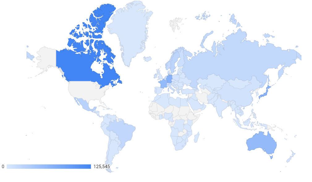 To make it a little more fun, we made this map of the world that highlights more blue if we sold more copies of the game there. Note we omitted sales from the US because it so heavily influences the map– everything else would look quite pale in comparison!