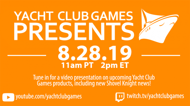 Wednesday, August 28th at 11am PST/2PM PDT, we’ll be live streaming from youtube.com/yachtclubgames and twitch.tv/yachtclubgames and include the latest news on Shovel Knight (there will be tons of surprises we promise you’ve never seen!). Please join us!