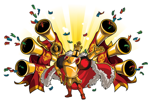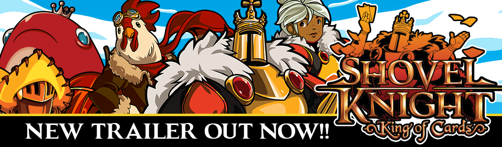 King of Cards marks our grandest adventure yet, and we hope the trailer whets your appetite for the banquet of adventure which awaits! It has more levels, mechanics, secrets, and content than any Shovel Knight game to come before it. It’s a spectacle, crammed to the coffers with ideas- it’s the biggest game we’ve ever made, and we can’t wait for everyone to finally, finally play it. We’ve used everything we’ve learned in the past to make this game shine. We hope that you’ll find it both a delightful return and a fitting sendoff to Shovel Knight: Treasure Trove.