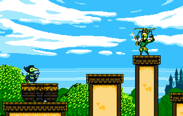 But it’s not all flight. Plague Knight’s seemingly erratic motion can lead to a barrage of attacks from all sides. Spin Burst can cannonball into unaware enemies, but they’ll soon begin to catch on and counter with a parry. Switch it up with a surprise bomb toss, double jump, or even another burst!