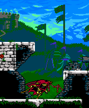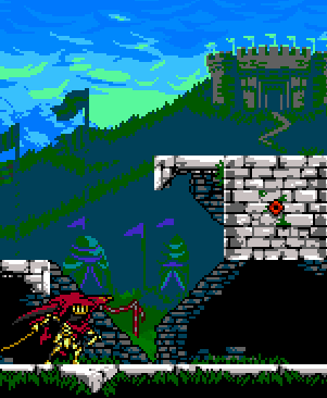 Specter Knight is surprisingly spry…He must have been quite agile in his past life! Hold down your directional pad toward a wall while making contact in the air and Specter Knight will immediately begin scaling it!
