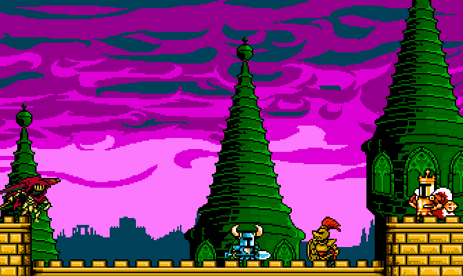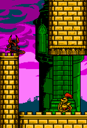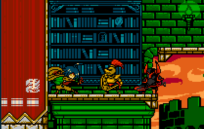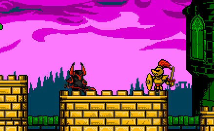 Hold up to block attacks from up above! The rumor going around Pridemoor is that even Shovel Knight was thrown off by this deft defensive maneuver.