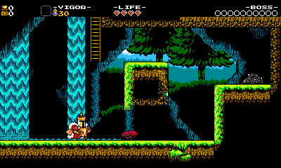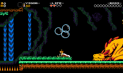 As you can see above, King Knight’s health is visually represented by hearts! In Shovel of Hope, Plague of Shadows, and Specter of Torment, health was always represented by “bubbles”. But for King Knight, we made this visual change because…