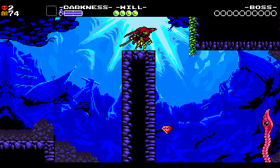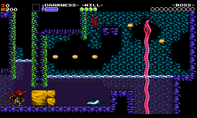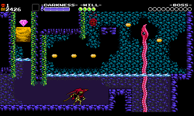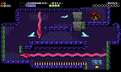 Specter Knight’s water physics make him much floatier, making difficult action sections like this possible because you have more leniency lining up Dash Slashes. If you manage to pull it all off, you’re rewarded with a checkpoint. Your Grapps fun is explored for now, and a new set of challenges begin with the next screen.