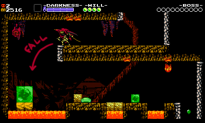 - If the enemy were further to the left or right, or if the pit were too wide, Specter Knight might fall into the pit even if you dash slashed perfectly.