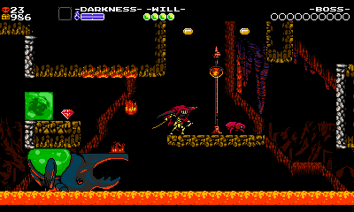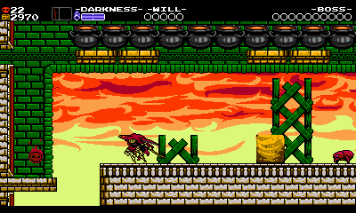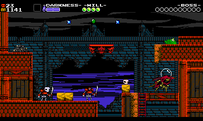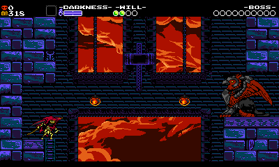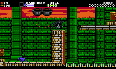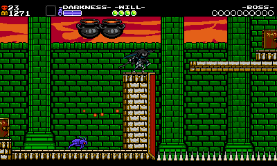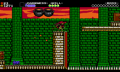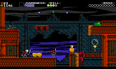 Darkness is a resource that lets Specter use his Curios- it’s basically your magic meter. Those Curios are powerful though, so we don’t want to have these Darkness jugs everywhere or Curios would be too spammable! We tried to put Darkness in places we thought players might need to rely on Curios, or as a reward after a tough portion of the stage. Specter of Torment has another complication- Specter Knight automatically regains some darkness as he defeats enemies. As a result, we ended up placing far fewer Darkness jugs near enemies.