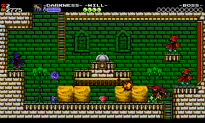 Now that the level design affords regular ol’ Specter Knight lots of fun options, we have to make sure we’re not missing any fun opportunities for players that love to experiment with Curios and Armors. Let’s look at this Pridemoor Keep room for an example.