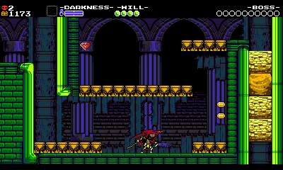 In Plague of Shadows, we placed 30 unique collectible Cipher Coins in each level. We did this to help create rewarding daredevil paths for Plague Knight to Bomb Burst through within existing Shovel Knight rooms, but it was definitely a lot to keep track of. 10 seemed like an ideal number for Specter – it let us hide them a variety of challenging spots, while still making each one feel valuable.