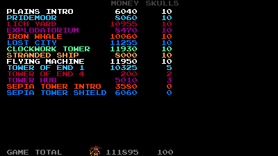 We also have to make sure the game’s gold totals are relatively balanced across all the stages. To make this easier, we made a handy tool to check the current totals of each stage. This isn’t an exact science – some levels have more secrets than others, some enemies naturally drop more gold than others upon defeat, and players are more likely to lose money in certain types of hazards. But it helps get us in the ballpark of a balanced economy.