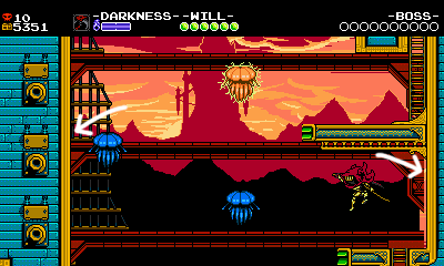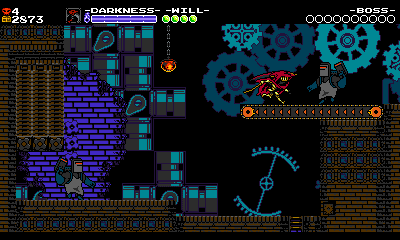 Watch Specter Knight after he defeats this Cogslotter. Since the enemy is positioned so close to the edge of the screen, if you re-enter the room you’ll slam right into them, taking damage unfairly!