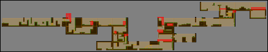 Here’s why. See the rectangles flashing in the screenshot of our level design tool above? We call those big red rectangles ‘blockers’ and they act as a collision ceiling that only turns on when you’re in the adjacent room. The player normally only triggers an upward moving room transition by climbing a ladder, so getting out and above the room another way would create many problematic situations. We place these blockers throughout all the levels to prevent the player from accidentally breaking outside the bounds of the room.