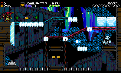 If we zoom the camera out, you can see what’s actually going on when Specter Knight attempts to climb up there. He hits a big invisible ceiling!