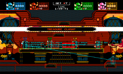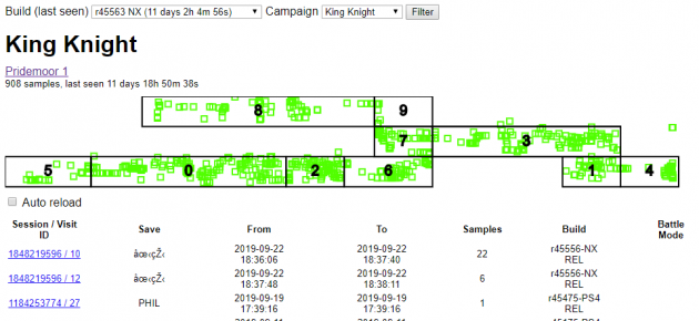 What you see above is an input replay of a King Knight stage- essentially a recording of all the inputs. When you play a developer build of Shovel Knight, every input you press is recorded and saved locally. This can then be booted up and played back, recreating the experience. You can jump to different places in the recording, speed it up, slow it down, or take over input control midway through the recording. This makes finding rare bugs much simpler- you only need to reproduce the issue once! Anyone on the team can directly send a recording of their control input to QA so they can experience first hand what’s happening when they play it back. Sometimes, debug features can turn into fun gameplay- did you know the Streetpass Arena game on the 3DS was created using our input replay system?