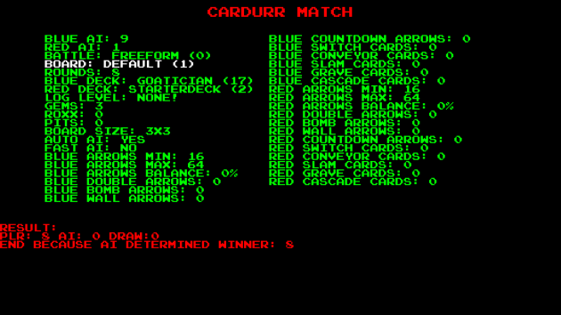 Balancing Joustus’ AI became very tricky as the game grew in complexity and depth. So, we set up a tool allowing us to simulate playing the card game without actually playing it! This helped in figuring out the strengths and weaknesses of our AI and card creations. It also helped pin down tons of bugs as we simulated thousands of matches!
