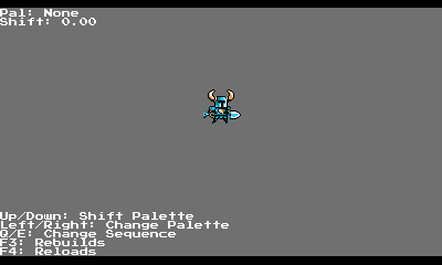 Palette effects can be hard to debug when the our art program and engine display differently. Even though we use Pro Motion to create all our sprites and animations, it’s nice to also have an in-game tool that lets us load up sprites and check that effects are working properly.
