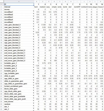 When we first created a Joustus AI to play against you, we focused on making the AI as smart as possible. From there, we planned to dial it back to be easier depending on what we wanted to achieve in each battle. There were many dimensions in which we could modify the AI to be more or less challenging to provide a unique play style. Sometimes the AI wouldn’t think turns ahead, they would be primarily focused on blocking out a gem, or were completely random! For each playable card, we ranked all the possible moves across all of these various dimensions to decide what the ideal AI move was! We found this method to work well! Unfortunately, the more we playtested with people, the more we found the AI was still too hard!