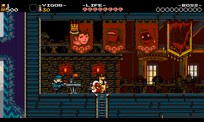 During development, a lot of thought went into how Joustus would fit within a platforming game. In its entirety, King of Cards is about King Knight traveling to a land that’s obsessed with Joustus. We felt that he should visit Card Houses and see the excitement for himself! He should battle opponents, collect cards, and ultimately become the King of Cards!