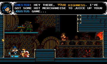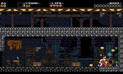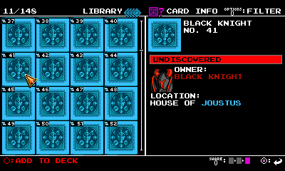 King Knight’s airship hub was decided as the only other location you could play cards. There, you could engage in battles with the Order of No Quarter and your Heirloom-dispensing followers. Initially, the Heirloom followers were passersby, but they were given their own spaces when Joustus grew in scope. The number of foes eventually ran to more than 50. Robust!