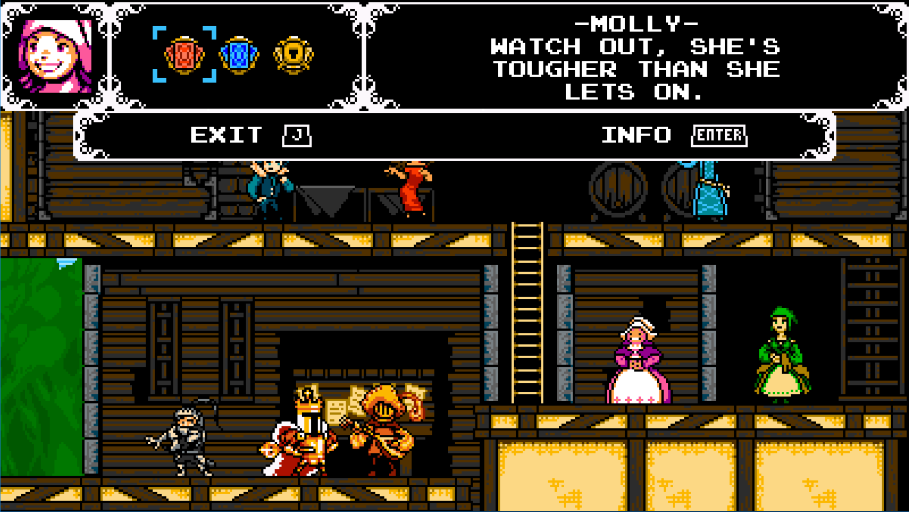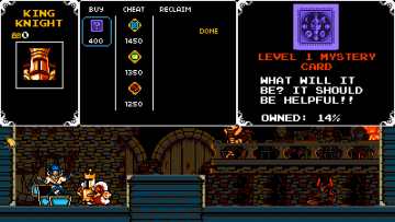 We acknowledge that everyone wanted a multiplayer mode! We did too! In our 4.1 Patch update for King of Cards, we added a secret feature for a Joustus local co-op! Pressing “Up” in front of the mirror in King Knight’s room allows for Joustus Free Play! Where you can set up Joustus decks, board layouts, and more! So you can play with your Joustus fanatic friends to your heart’s content!