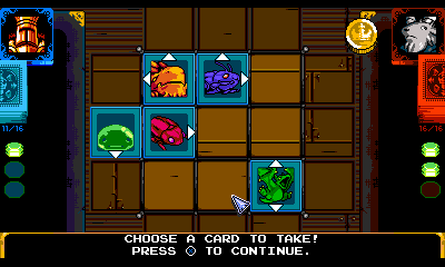 This led to the creation of the Card Crystal. Which would be unlocked once you beat Giga Cardia, the final Joustus boss! It would show you the owner of every card. We figured this would be a good balance between searching and collecting. This way, collecting all the cards ends up feeling rewarding and not too tedious! Even after all the gameplay testing, several of us still 100% the card collection for fun each time we play!