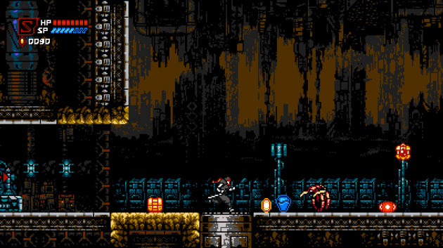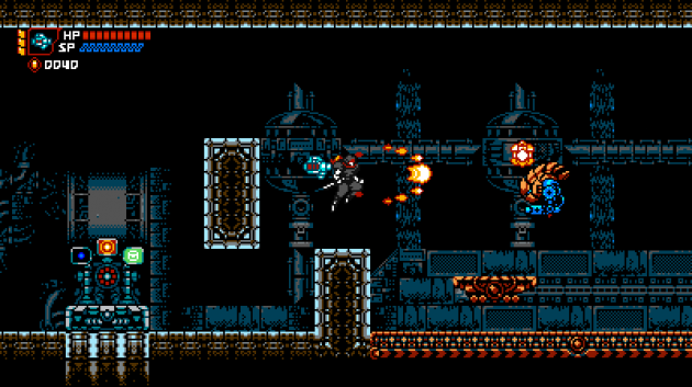 You’ll find checkpoints in the form of service pods that offer services beyond just saving your game. The game is saved by touching one of these. You can also spend essence to get HP and SP refills or special items. Access the service pod by pressing up while standing on it.