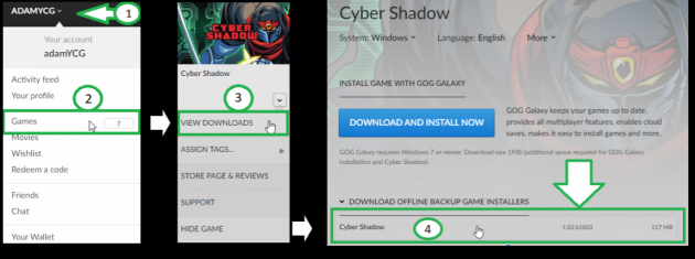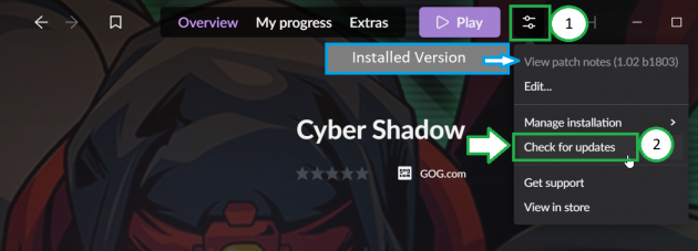 Within the GOG Galaxy client, select Cyber Shadow and follow these directions.