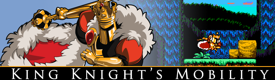 Howdy athletic aficionados! Creating King Knight’s mobility set was one of the most scrapped and reworked designs we’ve ever done! He went through a lot of stages to get to his glorious landing, and we thought it’d be fun to discuss his royal journey- similar to how we did with Plague Knight and Specter Knight! Be sure to check out those past articles, as there are lots of tiny decisions we won’t be discussing that might be covered in our previous writing.