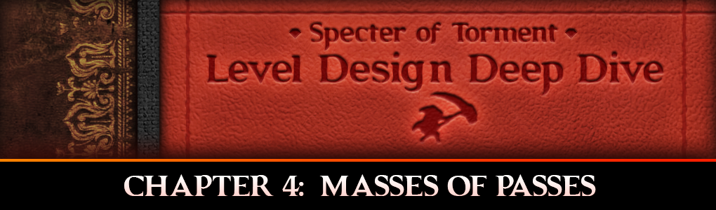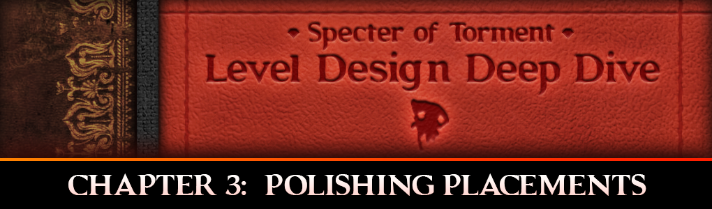 Finalizing a level requires that it be considered in every way. To make sure that we didn’t forget anything, we’ll take “passes” at the whole level, and then the whole game, with a specific element in mind. Pickups like Health, Gems, Darkness, and Red Skulls all got thorough passes to make sure they were balanced, but there are some less obvious considerations too!