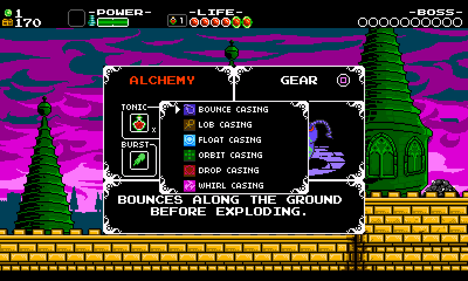 As if bombs and bursts weren’t enough, Arcana can be used to give Plague Knight some extra special firepower!