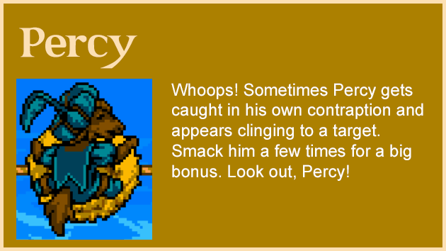 - As your score increases, the stage begins to become more perilous! Try survive the many hazards that Percy tosses your way!