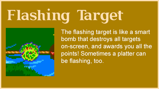- Targets appear in groups from the sides of the screen. Hit all the targets in a group to get a “Chain Bonus” score and earn some more seconds on the timer. Getting chains is the best way to a earn a high score!