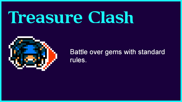 In Treasure Clash mode, players compete for gems! Collect the amount on the gem goal to win, but don’t lose all your stock first!